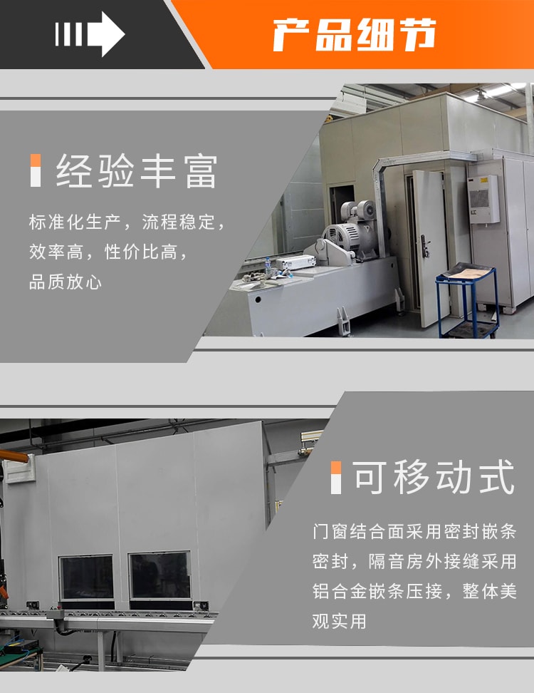 1、静音房主体结构为防震框架型,采用模块式拼装,方便安装和拆卸。